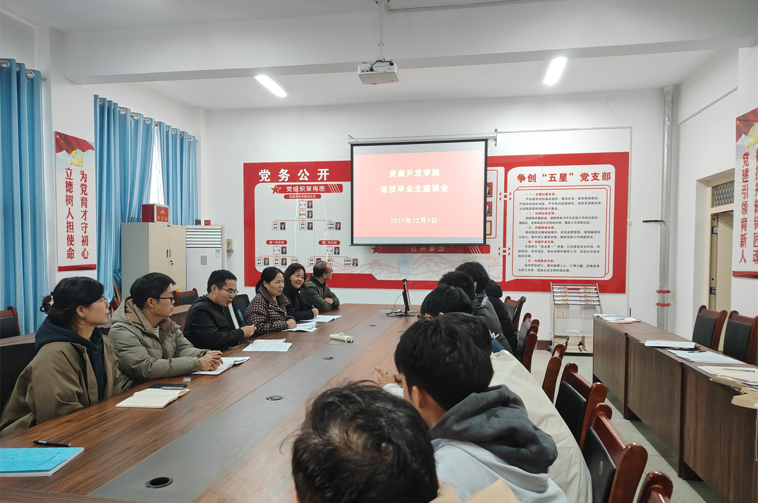 为进一步加强与毕业生的联系,精准把握行业发展趋势,优化人才培养方案,12月9日下午,资源开发学院在党建会议室召开毕业生座谈会。学院领导、专业教师代表与5名2022级毕业生齐聚一堂,共忆求学时光,分享职场感悟,为学院发展建言献策。
