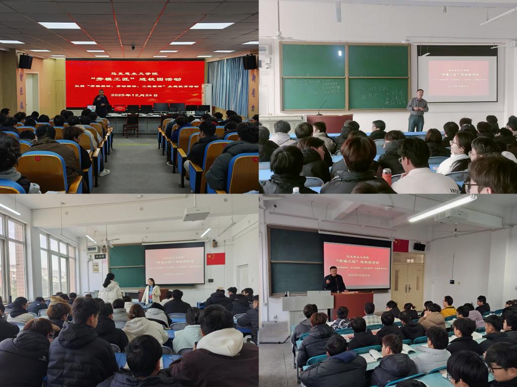 为弘扬劳模精神、劳动精神、工匠精神,以榜样力量铸魂育人,12月24日上午,马克思主义学院开展“劳模工匠进校园”活动。47位来自全市生产一线的劳动模范、工匠代表受邀入校,以“实地参观+课堂分享”相结合的形式,与师生开展跨越行业的深度对话,让“三种精神”成为滋养青年成长的精神养分。
