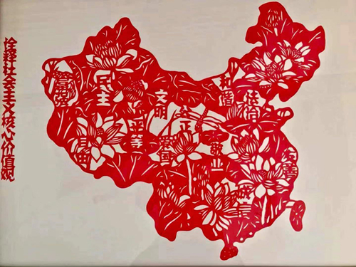 展出剪纸作品共计 21幅,均出自我校学生之手。作品《社会主义核心价值观》构思巧妙,将中国地图与社会主义核心价值观相结合,象征着全国上下共同践行社会主义核心价值观。《不忘初心,牢记使命》表达了新一代青年不忘初心跟党走,建设祖国、热爱祖国的强烈愿望。《梦》之灵感来自于“一唱雄鸡天下白”,“中国梦 平职梦 我的梦”犹如冉冉升起的太阳,充满朝气与生机。十二生肖系列剪纸线条优美,栩栩如生,充分展现剪纸艺术的魅力。