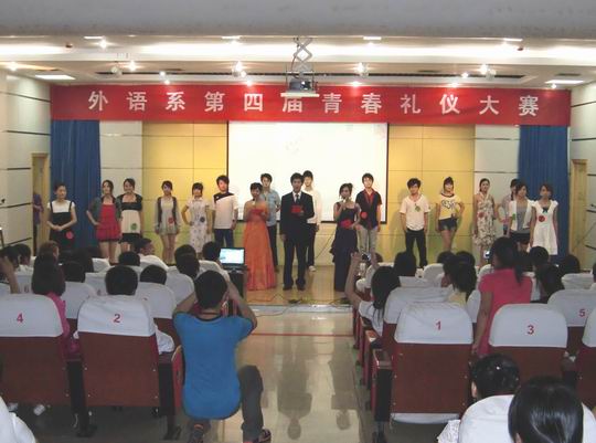 为培养学生的文明素养和道德素质,展示外语系学生朝气蓬勃、奋发向上的精神面貌,活跃学生课余文化生活,外语系于近日在图书馆一楼报告厅举办了第四届青春礼仪大赛。