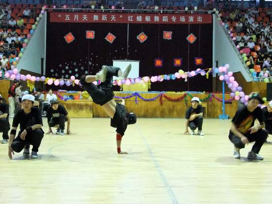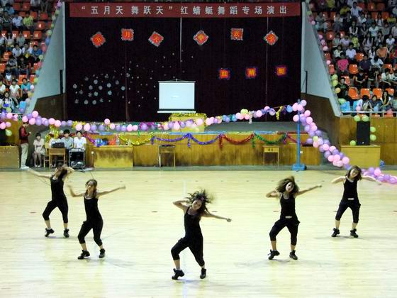 本网讯(许培)5月15日晚,院大学生文化中心花团锦簇,欢歌劲舞,激情飞扬。由我院红蜻蜓舞蹈社团主办的“五月天·舞跃天”大型舞蹈专场演出在此隆重举行。团委书记李金磊出席晚会并与千余名学生一同观看了演出。