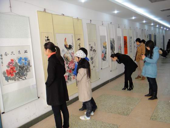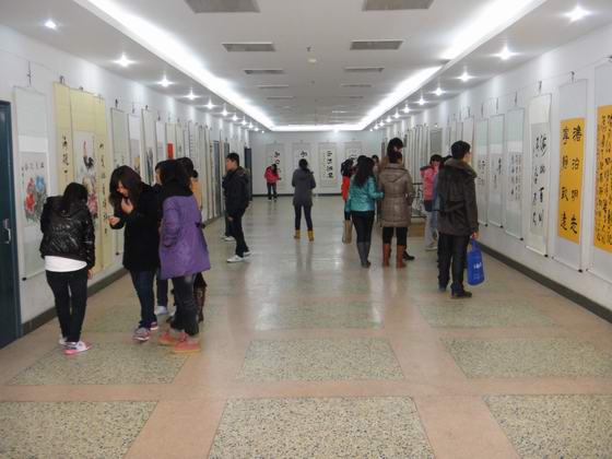 本网讯(司龙海)12月8日,由院团委主办、书画协会承办的书画展在图书馆展厅举行,展出了书画爱好者的50多幅作品。此次展出的作品有草书、楷书、行书、国画和篆刻等。书画展活跃了校园文化生活,拓展了同学们的知识面,表现了平职学子多才多艺综合素质和健康向上的精神风貌。