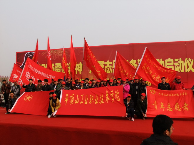 本网讯(司龙海)团旗飘扬、青春激荡。为纪念毛主席号召向雷锋同志学习50周年,弘扬雷锋精神,促进我院精神文明建设,3月5日上午,宣教处、团委、思政部组织全院280余名团员参加平顶山市学雷锋活动启动仪式。当日中午,院团委组织各系部、各社团近千名同学在升旗广场参加了“平职学院学雷锋实践活动暨启动仪式”。