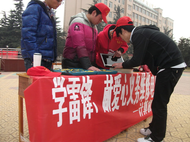 本网讯(周刚伟)3月5日,我院计算机系在升旗广场举办了“弘扬雷锋精神,义务维修电脑”为主题的志愿服务活动。该系十多名政治素质优秀、业务能力过硬的志愿者同学参加了此次活动。