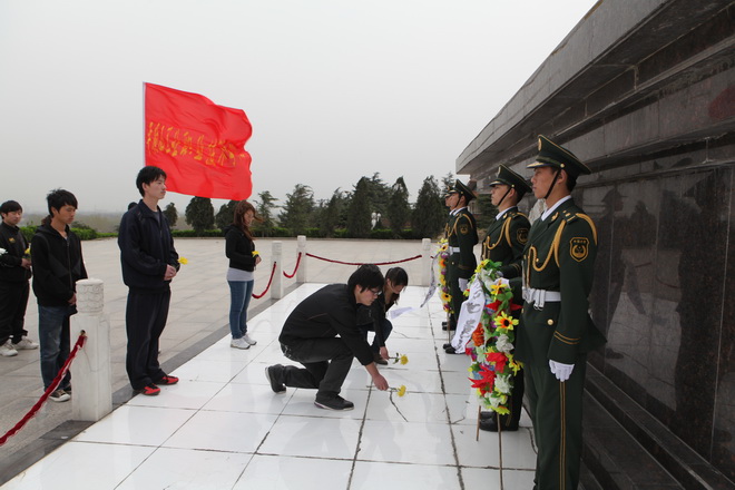 在革命烈士纪念碑下,同学们怀着崇敬心情,向长眠于此的共和国烈士默哀三分钟,并敬献鲜花。院团委方铭坡同学发言,表示要继承烈士遗志,发扬革命传统,努力学习,练好本领,为国家建设和民族兴旺建功立业。