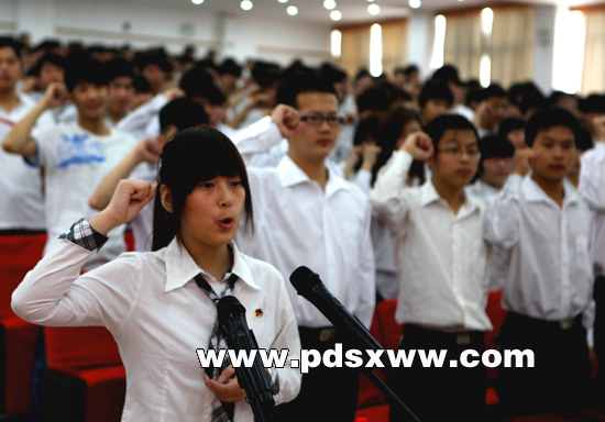 5月4日,260名优秀学生在老团员带领下宣誓加入共青团。