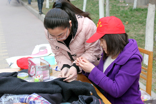 为进一步弘扬雷锋精神,倡导校园志愿服务,以实际行动传播志愿服务精神,我院青年志愿者协会于3月10日在学院2号楼前举办了以“一丝细线,情动你我”的校园巧手缝补站活动。