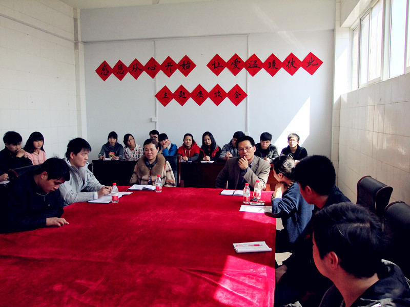 学院团委副书记彭东老师首先就亲情和同学们真挚讲述了与父母的相处之道,并教导同学们“如果不能经常陪伴在家人身边,也不要忽略远方的亲人。每天一个电话、一句亲切的问候是那些用物质堆砌出来的亲情永远无法比拟的。”这看似简单、平凡的话语正在悄悄打开学生们紧闭的心门。