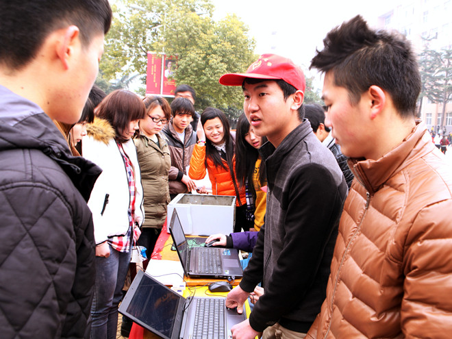 3月5日,平顶山工业职业技术学院选派学有所长的学生党员、入党积极分子在该院各校区设立学雷锋服务点,为师生义务提供电脑维修、自行车修理等服务。图为该校志愿者在义务提供电脑技术咨询服务。 (2014年3月7日,《教育时报》二版 通讯员王尧 摄)