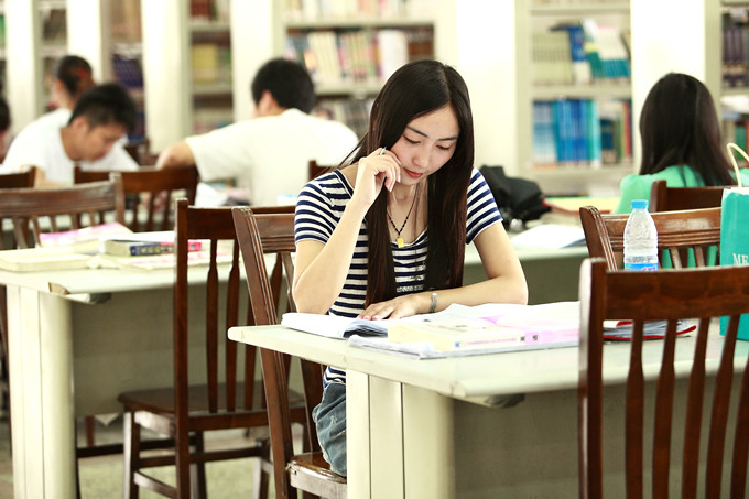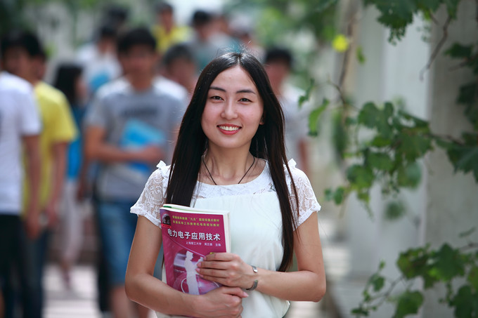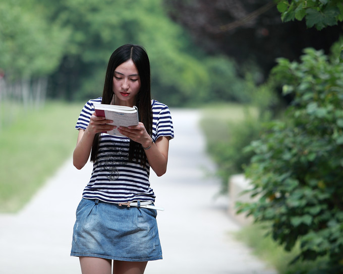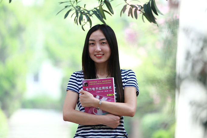 每天我们大家都可以看到她往返于图书馆和实训楼之间。