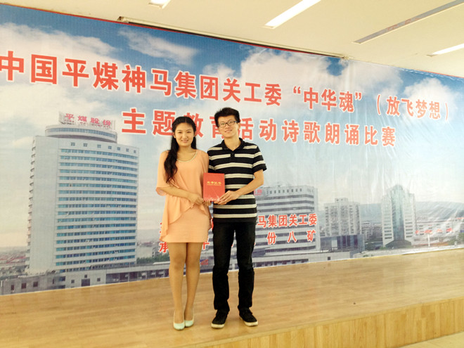 近日,由中国平煤神马集团关工委主办、平煤股份八矿承办的“中国平煤神马集团关工委‘中华魂’(放飞梦想)主题教育活动诗歌朗诵比赛”在八矿职教中心会议室举行。我院学生曹新欣、宋佳音以情景朗诵《蚂蚁》为题参加了此次比赛,荣获二等奖。