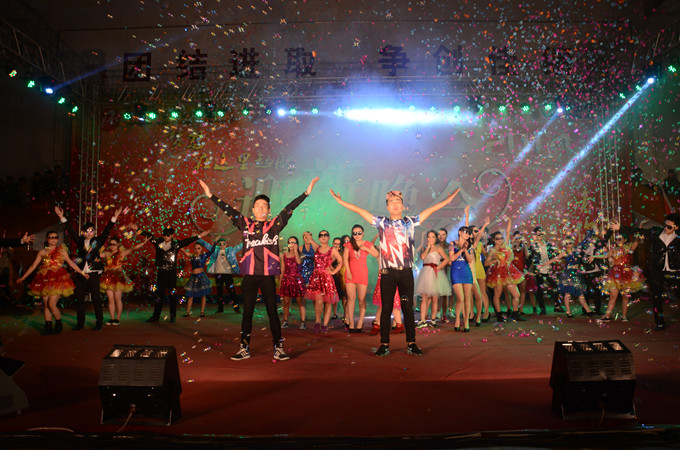由学院军乐团演奏的《中国中国,鲜红的太阳永不落》拉开了晚会的序幕。整台晚会节目异彩纷呈,青年教师冯泽星演唱的《在希望的田野上》,带来了对美好未来的憧憬;2014级新生李恒表演的快板《糊涂县官》,以其幽默、诙谐的肢体动作和语言赚足了全场的眼球。国防教育协会的《军体格斗表演》,刚劲有力,英姿飒爽,彰显了我院大学生活力四射、激情洋溢的精神风貌;艺术系青年教师徐潇演奏的二胡《葡萄熟了》在青年教师刘阳、石志宏手鼓、舞蹈配合下,优美的旋律,娴熟的技艺,给台下的观众带来了美妙的音乐享受与美好祝福。梦缘剧社的同学们表演的小品《大学小事》,博爱艺术团、红蜻蜓舞蹈协会、北极星艺术团、特舞团的同学们表演的《舞动青春》等节目,魅力十足,激情四射,更将晚会现场不断推向高潮。此台晚会不仅彰显了我院大学生的青春风采,体现了当代大学生的精神风貌,更展示了他们健康的审美情趣,诠释了大学生活的真正意义,为建设和谐文明校园添上绚烂的一笔。