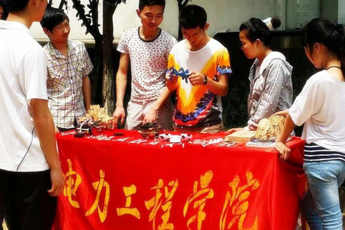 5月5日,电力工程学院机器人协会在学院二号教学楼门前举办第十五届社团科技文化艺术节之科技作品展。