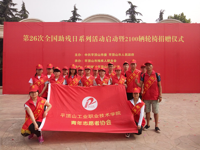 5月21日,河南省助残济困总会、河南省残疾人福利基金会、平顶山市政府第26次全国助残日系列活动启动暨2100辆轮椅捐赠仪式在鹰城广场举行,我院青年志愿者协会参加了此次启动仪式,并承担了仪式的志愿服务工作。