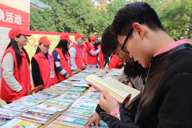 11月14日,剪纸协会、书法协会共同举办的“剪纸、书画大赛”在孵化园广场举办。憨态可掬的动物剪纸、惟妙惟肖的历史人物剪纸,潇洒飘逸的行书草书,形态各异的剪纸作品等引来众多同学驻足欣赏。同时青年志愿者协会开展的“以书换书、以书会友”的图书交换公益活动,达到了爱心接力,知识传递的活动目的。