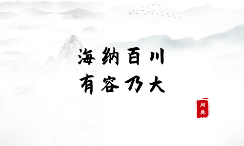 大海可以容纳千百条河流,因为大海拥有这样宽广的胸怀,所以是最伟大的,人也要心胸宽广才能变得伟大。做人如此,治国亦如此,国际交往中更是如此。十八大以来,习近平在多个外交场合引用了该典故。2013年在博鳌亚洲论坛上,习近平说道:“‘海纳百川,有容乃大。’我们应该尊重各国自主选择社会制度和发展道路的权利,消除疑虑和隔阂,把世界多样性和各国差异性转化为发展活力和动力。”当年10月,习近平在印度尼西亚国会演讲时再次提及这个典故。开放才能带来进步,合作才能实现共赢。只有牢固树立人类命运共同体意识,坚持包容普惠,推动共同发展,才能够开创人类更加美好的未来。