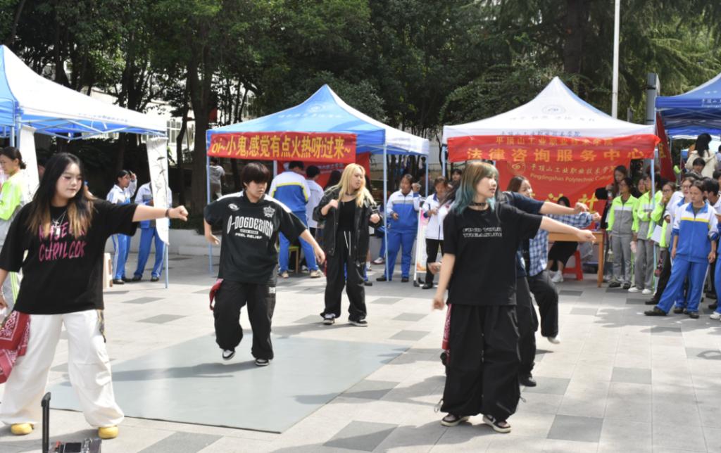 活动期间,社团为招新出谋划策,穿着独具特色的服装、跳着流行舞,以展示才艺最直观的方式来体现主要活动,吸引同学们的目光。