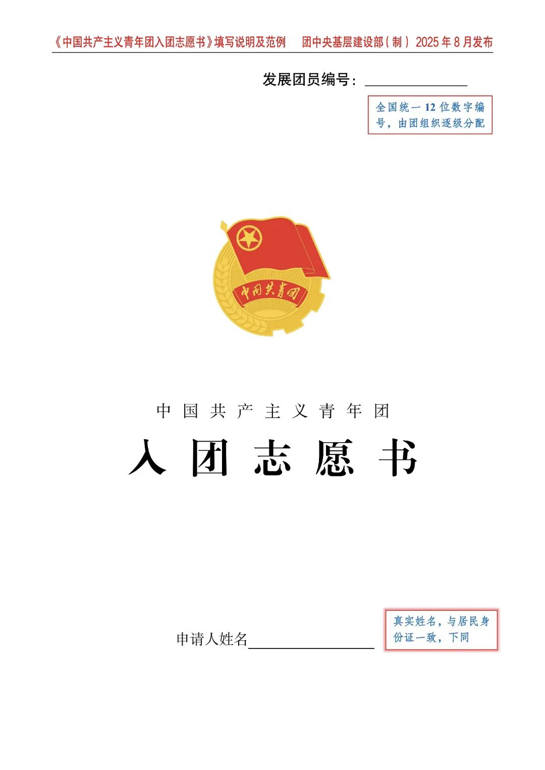 工作中发现,有的地方在填写、审核入团志愿书过程中存在指导不具体、填写不规范、审核不细致、审批不严谨等问题,影响了发展团员的质量和工作的严肃性、规范性。为加强具体工作指导,团中央基层建设部制定了入团志愿书填写说明及范例(2025年8月发布),供广大基层团组织、团干部和入团积极分子学习掌握。