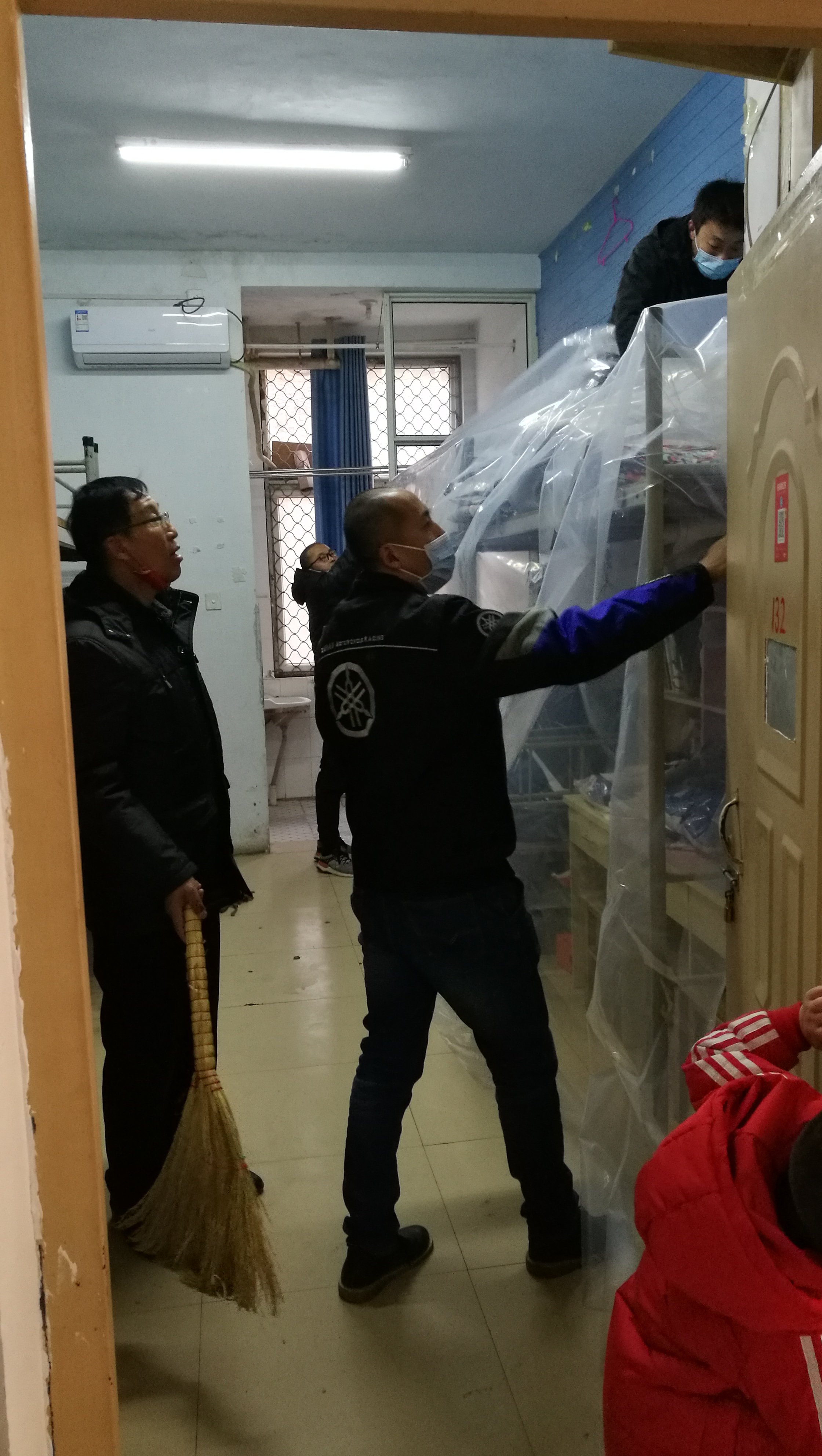体育与心理健康教育部党支部接到学校通知后,利用微信群号召全体教职工来校,接到通知后,大家纷纷表示,疫情面前,任务就是命令,立即行动起来,包括凌晨奋战在防控一线被熬红了双眼的郭迅,一身疲惫的郑怡,家都没回的司雨露、贾华瑞、张丽同志,大家不推脱,不抱怨,不退后,每一个人来到学校马上就投入到宿舍整理工作中。