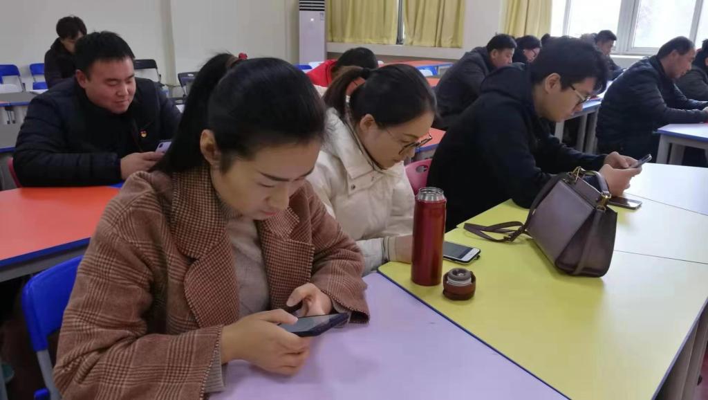 此次线上答题挑战赛是以“智慧党建”中的在线考试答题为载体来进行,每名党员选择“党员基本知识”考试答题的最高得分,截屏参加比赛,通过比赛检验“智慧党建”学习效果。挑战赛上,每名党员通过手机线上答题的方式在企业微信APP“智慧党建”在线答题栏目答题,比赛现场静寂无声,参赛选手沉着发挥、认真答题。