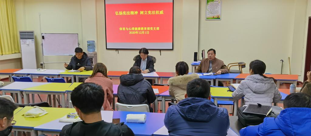 为认真贯彻落实习近平总书记关于宪法学习宣传教育的系列重要指示精神,12月3日下午,体育与心理健康教育部组织全体教职工在会议室开展了“学宪法 讲宪法”活动。