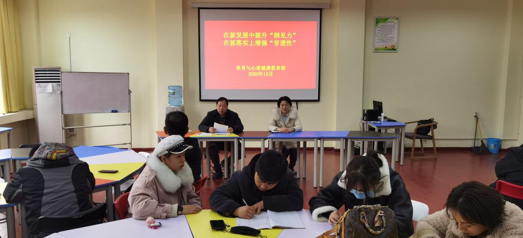 12月8日下午,体育与心理健康教育部在院士楼二楼心理团队辅导室认真组织全体教职工学习了《中国平煤神马报》评论员文章《在新发展中提升“洞见力” 在抓落实上增强“穿透性”》。
