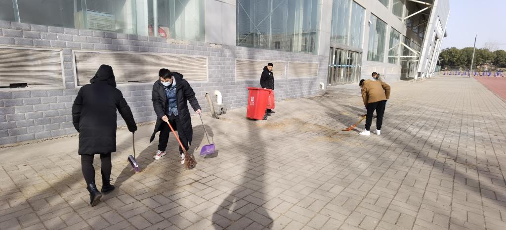 学习活动结束后,全体党员在部门负责人带领安排下,对体育与心理健康教育部负责区域的环境卫生进行整治。党员们手拿扫把、垃圾斗、夹烟器、铁锨等清洁工具,不畏严寒,铆足干劲,积极发扬不怕辛苦的劳动精神,相互配合,将落叶、杂草、枯枝、纸屑、杂物等各种垃圾进行集中打扫清理。此次活动共计清理卫生死角20余处、杂物垃圾装满了整整四个垃圾桶。