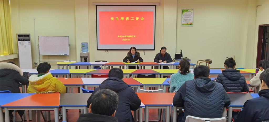为进一步严格落实学校关于安全工作部署要求,落实安全教育管理工作措施,突出工作重点,及时消除安全隐患,坚守安全红线,3月2日下午,体育与心理健康教育部在院士楼二楼团体辅导室召开了安全管理培训工作会。