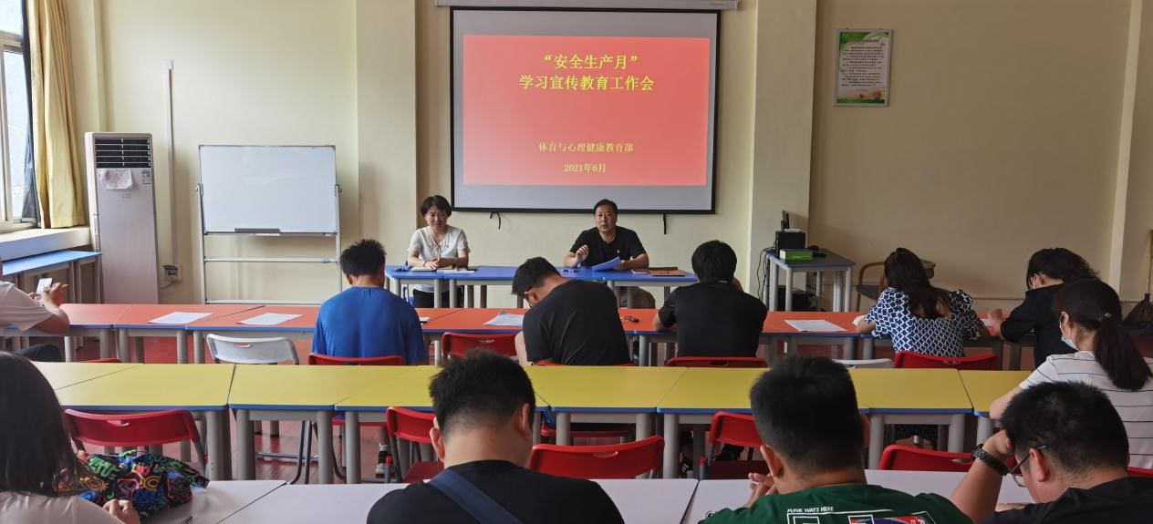 为深入贯彻落实习近平新时代中国特色社会主义思想和党中央、国务院及省委、省政府关于加强安全生产工作的决策部署,根据上级及学校关于开展2021年“安全生产月”活动等文件要求和部署,为进一步增强安全意识,提高安全技能,体育与心理健康教育部结合部门实际积极开展了相关活动,现总结汇报如下: