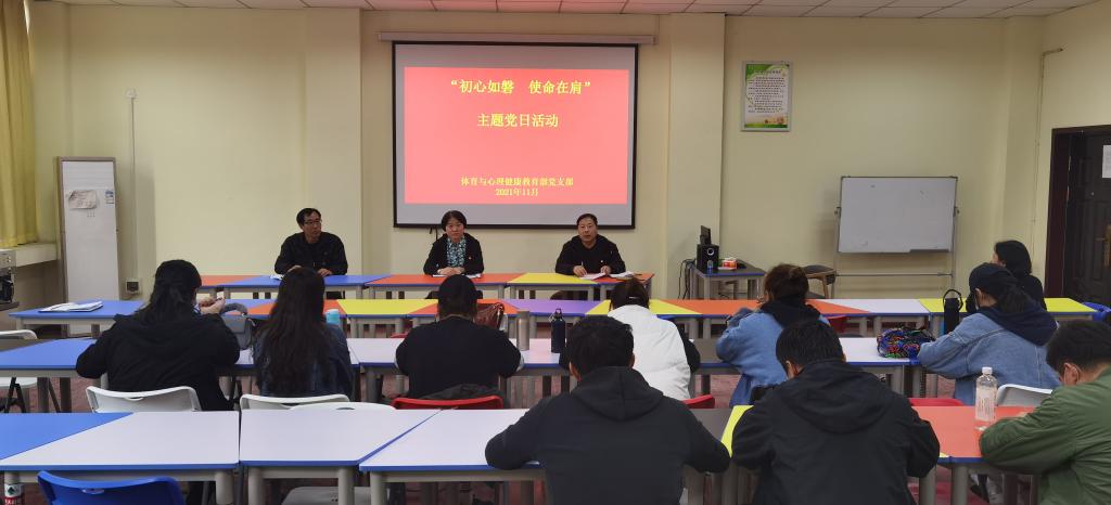 11月2日下午,体育与心理健康教育部党支部在院士楼心理团体辅导室开展了“初心如磐使命在肩”主题党日活动。