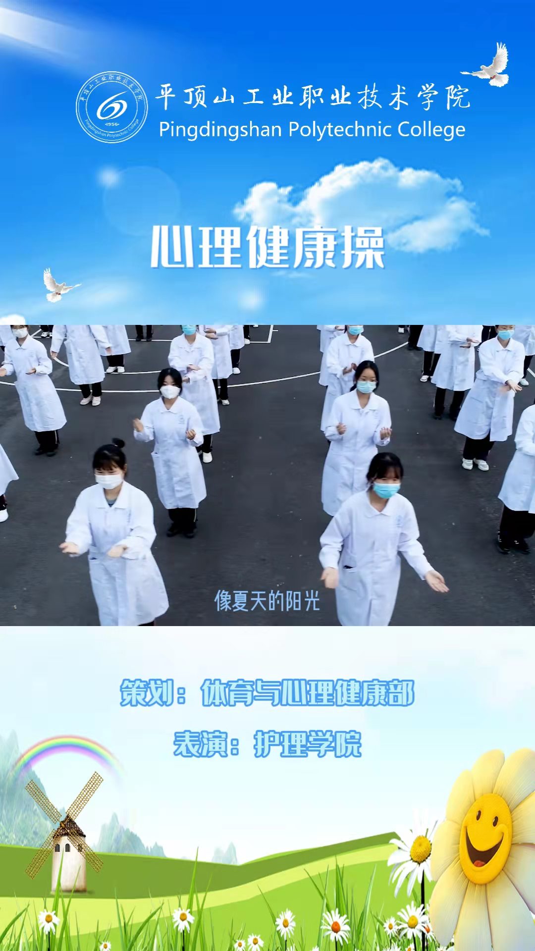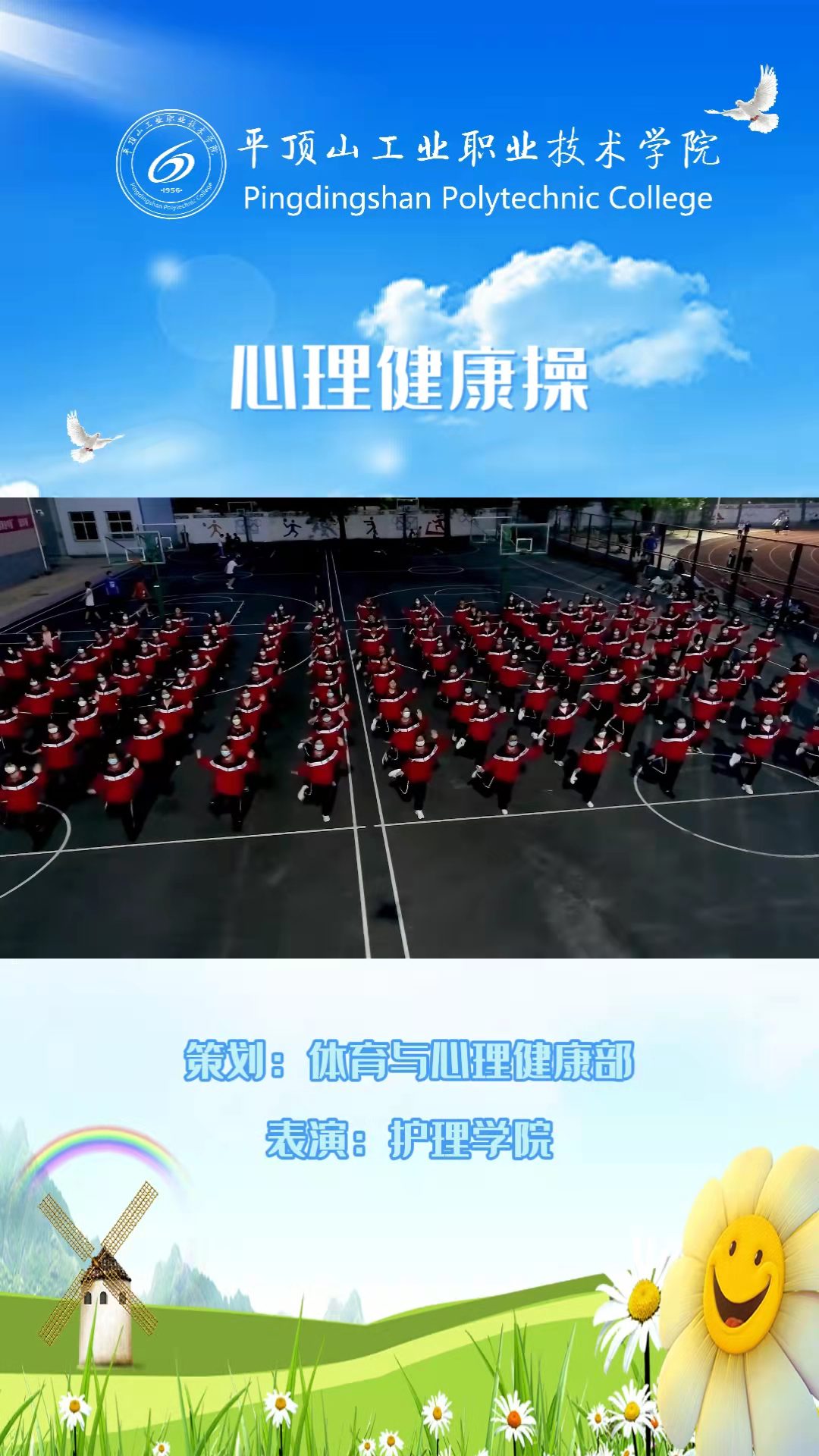 疫情防控期间,体心部通过各种工作举措,引导学生树立积极面对疫情的乐观心态,鼓励学生强身健体,增强体质,多方法、多途径缓解封校学生学习和生活压力,营造更加和谐温暖的平职校园氛围。