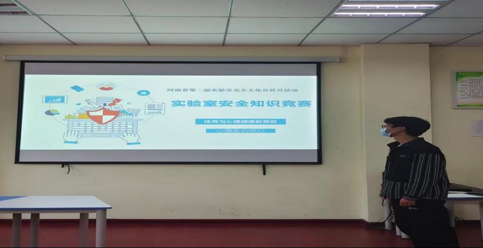 2022年9月22日上午,学校第二届实验室安全文化宣传月活动启动仪式在1号教学楼206智慧教室举行。在遵守学校各项防疫规定的前提下,体育与心理健康教育部心理实训中心组织老师们观看了第二届“河南省高校实验室安全文化宣传月”活动开幕式线上直播。