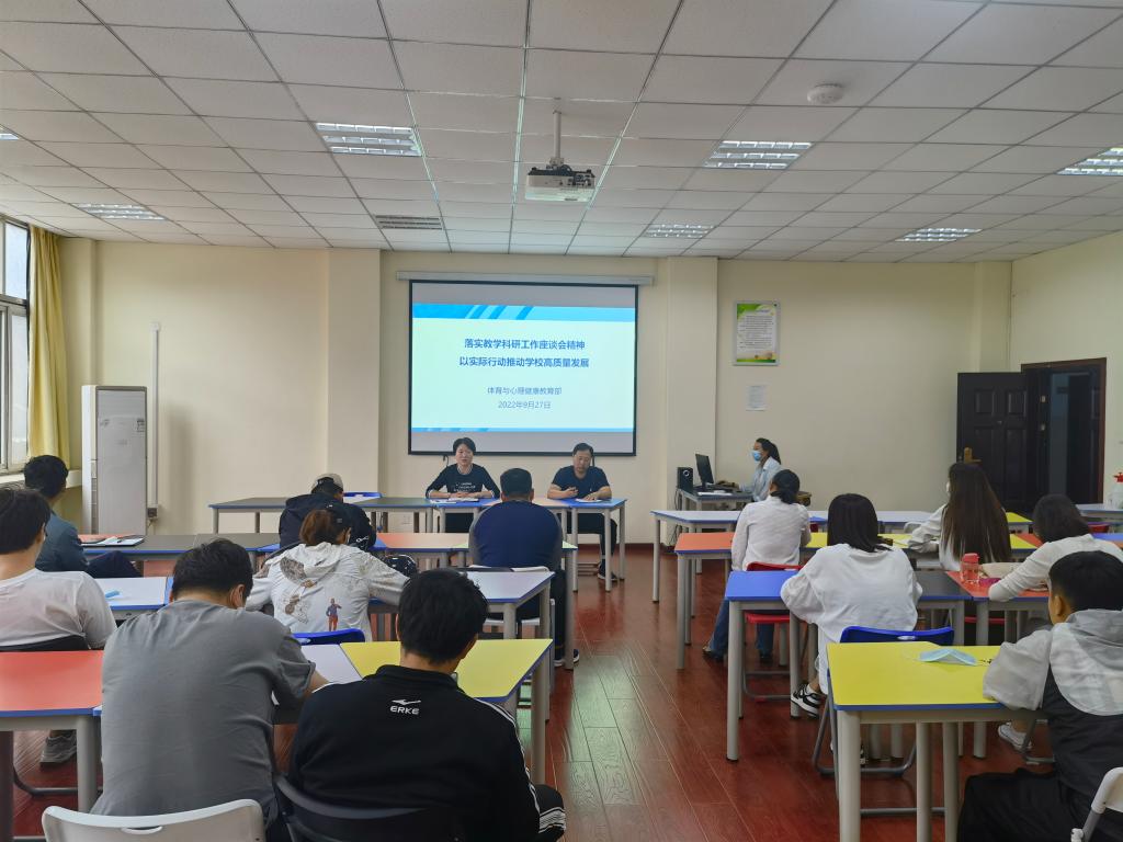 9月27日,体育与心理健康教育部按照学校工作安排召开“落实教学科研工作座谈会精神,以实际行动推动学校高质量发展”。会上王洪主任针对教学科研传达了相关会议精神并做出重要指导。