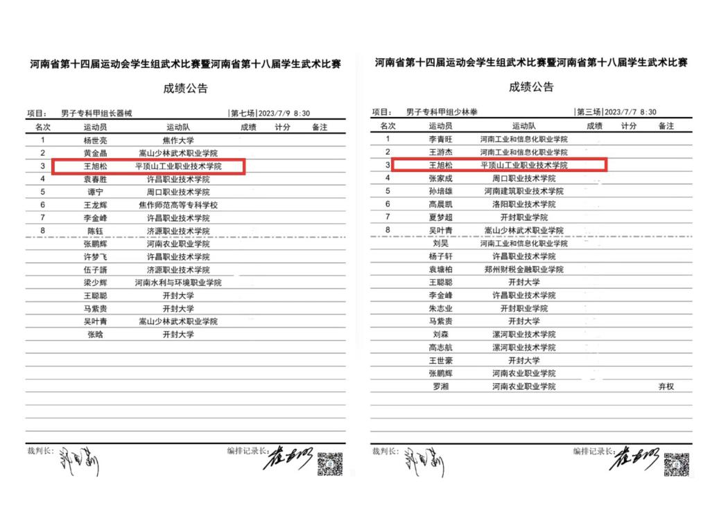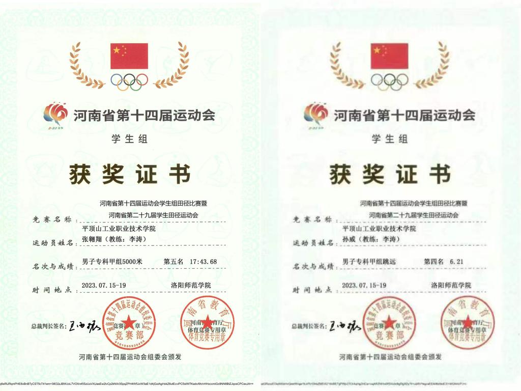 近日,由河南省教育厅、河南省体育局、河南省学生总会联合举办的河南省第十四届运动会学生组竞赛落下帷幕,我校武术代表队获得男子专科甲组长器械个人单项第三名、男子专科甲组少林拳个人单项第三名,田径代表队获得男子专科甲组跳远第四名、男子专科甲组5000米第五名。