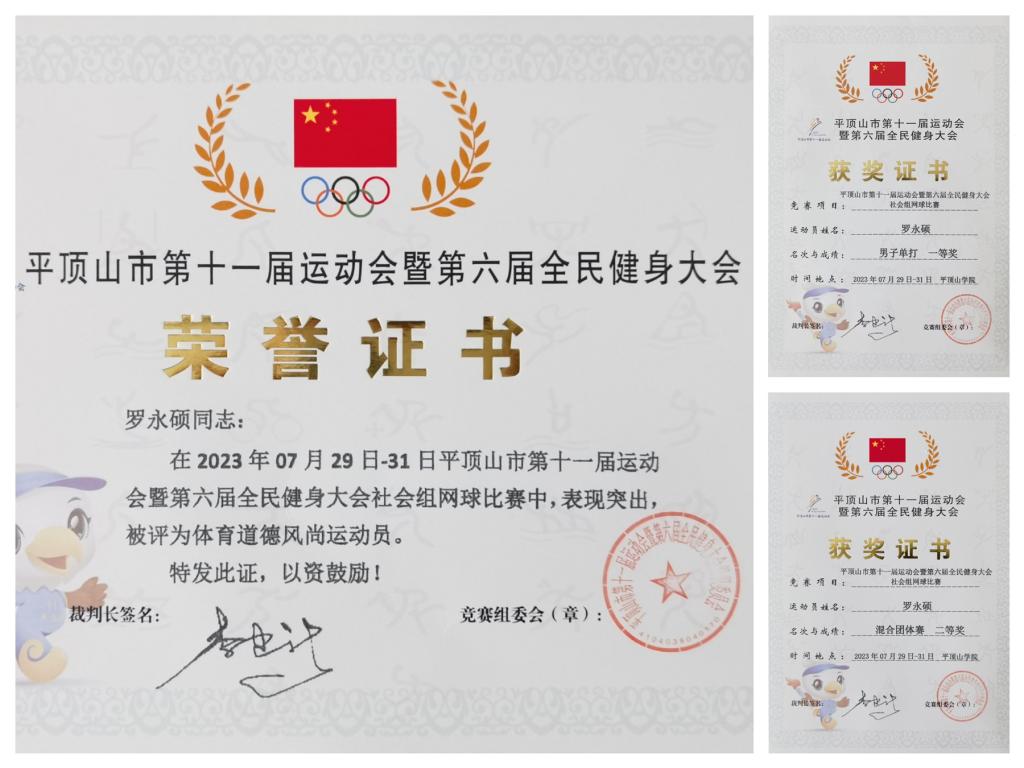 7月29日至31日,平顶山市第十一届运动会暨第六届全民健身大会社会组网球比赛在平顶山学院体育运动中心举行,我校体育与心理健康教育部教师刘金荣获女子双打一等奖、女子单打二等奖、混合团体赛二等奖,罗永硕荣获男子单打一等奖、混合团体赛二等奖,被评为体育道德风尚运动员。