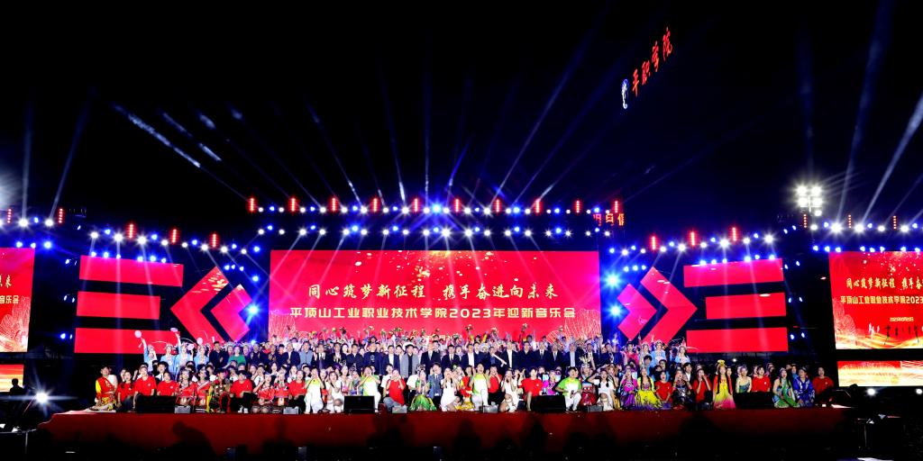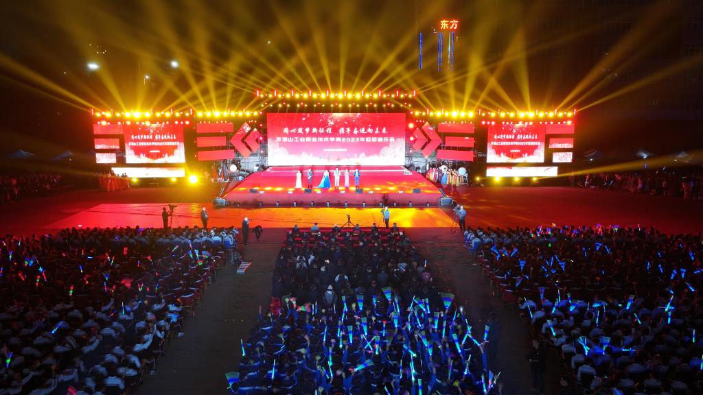 同心筑梦新征程,携手奋进向未来。10月20日晚,平顶山工业职业技术学院2023年迎新音乐会在体育场隆重举行,中国平煤神马集团党委副书记、工会主席张金常,该校党委书记毕晓阳,校长李树伟,中国平煤神马集团工会副主席白国周,中国平煤神马集团文工团团长李阁琪等领导,优秀校友代表、教师代表以及全体2023级新生共9000余人现场观看演出,音乐会同步进行现场直播,线上收看人数达40000余人。