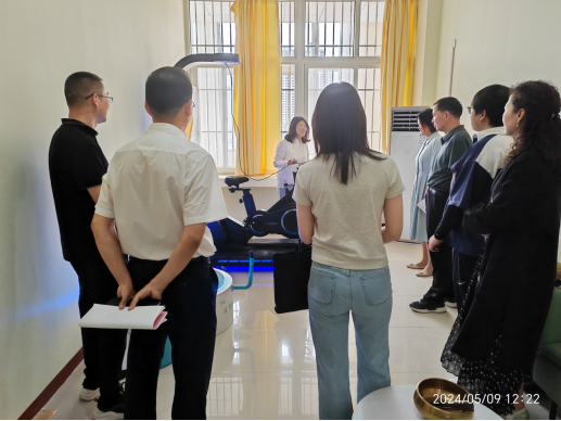 心理咨询中心王一飞老师给各位参观领导进行了各功能室的讲解,详细展示了各个心理咨询室心理设备的使用方法和作用,各位领导对心理功能室的齐全设备深表赞许。