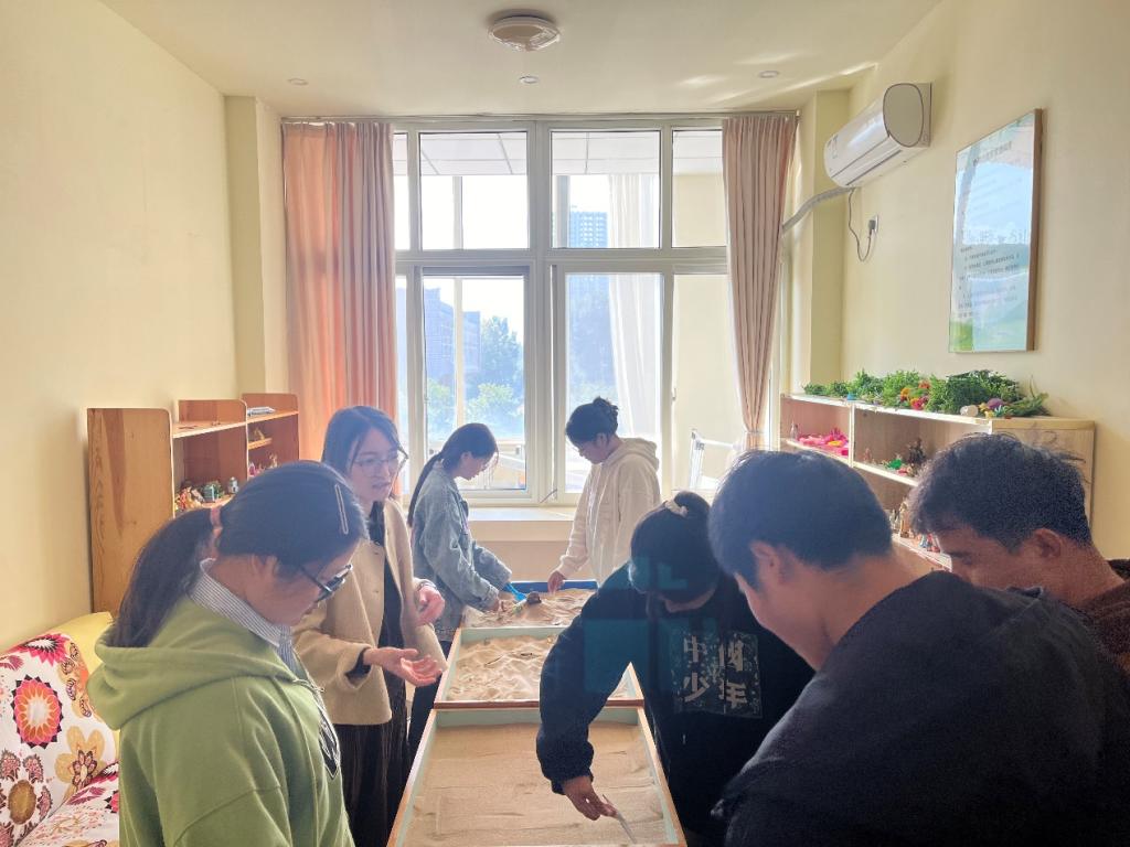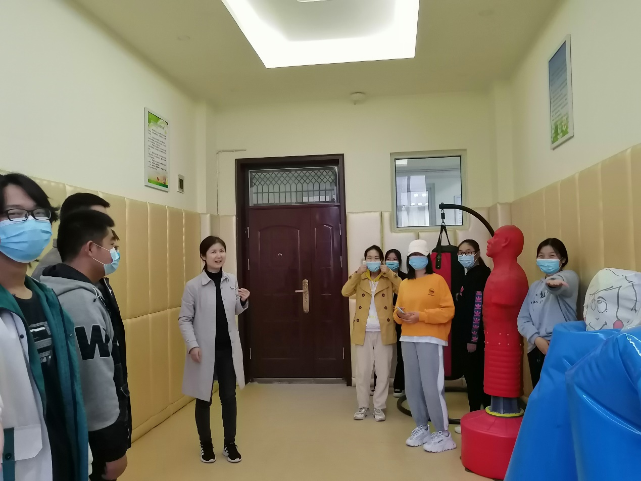 在心理中心的工作人员带领下,同学们参观了多个不同功能的区域,包括积极心理中心、宣泄室和音乐放松室等。每个区域都设计得十分专业,配备了各种心理辅导工具和设施。