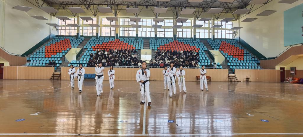 在比赛结束之际,跆拳道表演开始了,队员们动作流畅、身手娴熟、刚柔并济、精彩纷呈,更是将现场气氛推向了高潮。