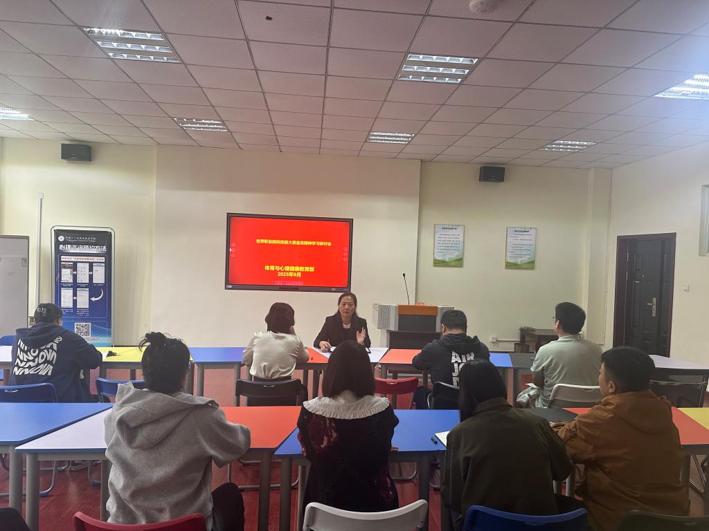 在研讨环节,教师们对标“金奖精神”,立足自身职能,聚焦“健康第一”和“全面发展”,谋划以下重点工作:弘扬“工匠精神”,提升教学与服务质量:开展教学大练兵活动,细化体育技能教学标准和心理健康辅导流程,追求教学与服务的专业化、精准化。加强对学生体质健康测试数据和心理普测数据的深度分析与应用,精准施策,个性化指导;强化“团队精神”,构建协同育人新格局:内部强化体育教师与心理健康教师的交叉学习与联合教研,共同设计实施体心融合课程与活动;践行“实战精神”,深化教育教学改革:体育与心理学教师积极参与各类比赛,总结经验,共同探讨;激发“创新精神”,探索心理健康教育新模式:将心理健康教育与手穴砭术相结合的一种创新整合性健康干预模式,融合了心理学理论与传统中医外治的优势;夯实“传承精神”,完善工作体系与保障:系统总结部门现有工作经验,形成可复制、可推广的体心融合教育案例库和资源包。
