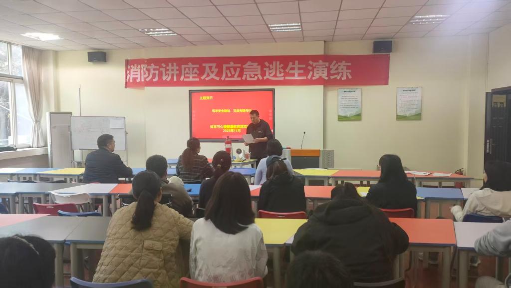 为拧紧校园消防安全“安全阀”,11月11日下午,体育与心理健康教育部组织全体教职工开展消防专题培训暨应急逃生演练,以“理论+实践”模式筑牢安全防线。