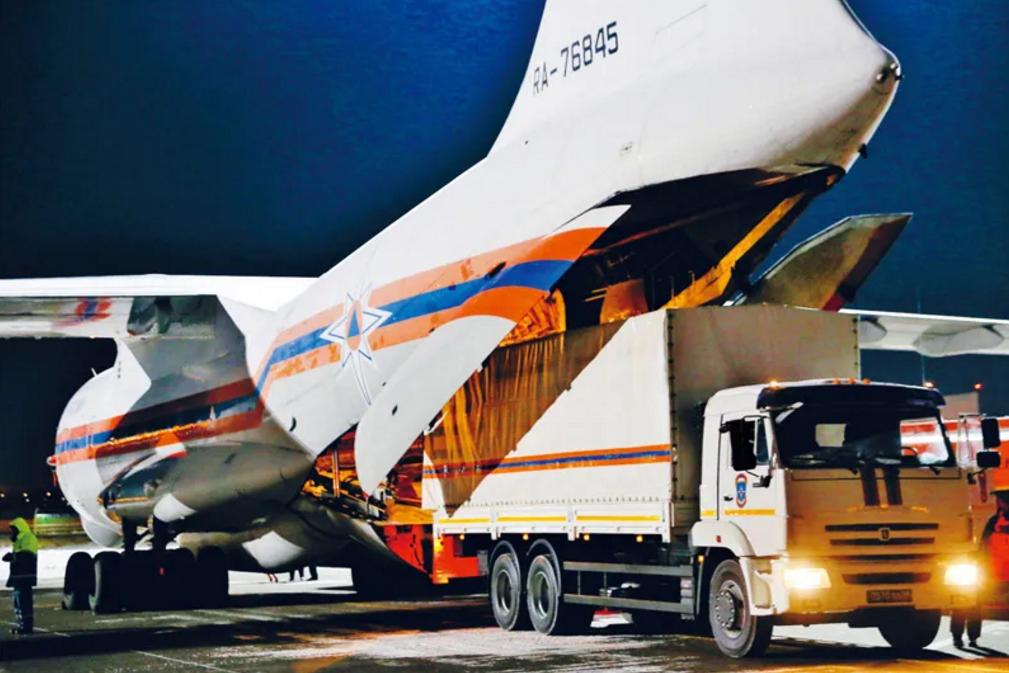 (2020年2月8日,在俄罗斯莫斯科附近的茹科夫斯基机场,工作人员将俄罗斯政府向中方提供的医疗援助物资装上运输机。新华社/卫星社)