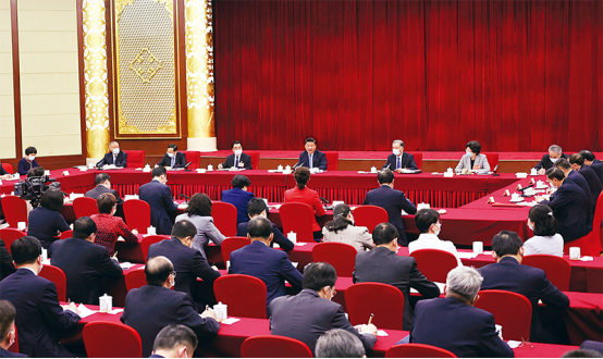 2022年3月6日,中共中央总书记、国家主席、中央军委主席习近平看望参加全国政协十三届五次会议的农业界、社会福利和社会保障界委员,并参加联组会,听取意见和建议。中共中央政治局常委、全国政协主席汪洋参加看望和讨论。 新华社记者 王晔/摄