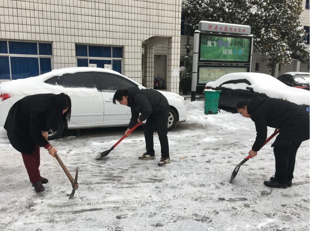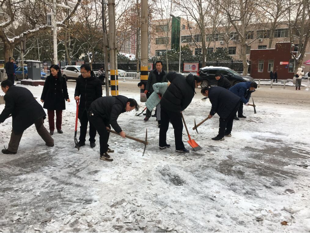 1月26日清晨不到八点,已经连降两日雪的平顶山到处银装素裹,美不胜收。但同时,道路湿滑也给校园出行造成了极大的不便及安全隐患。李新玉院长身先士卒,带领工贸校区教职工们积极行动,开展了义务扫雪活动。