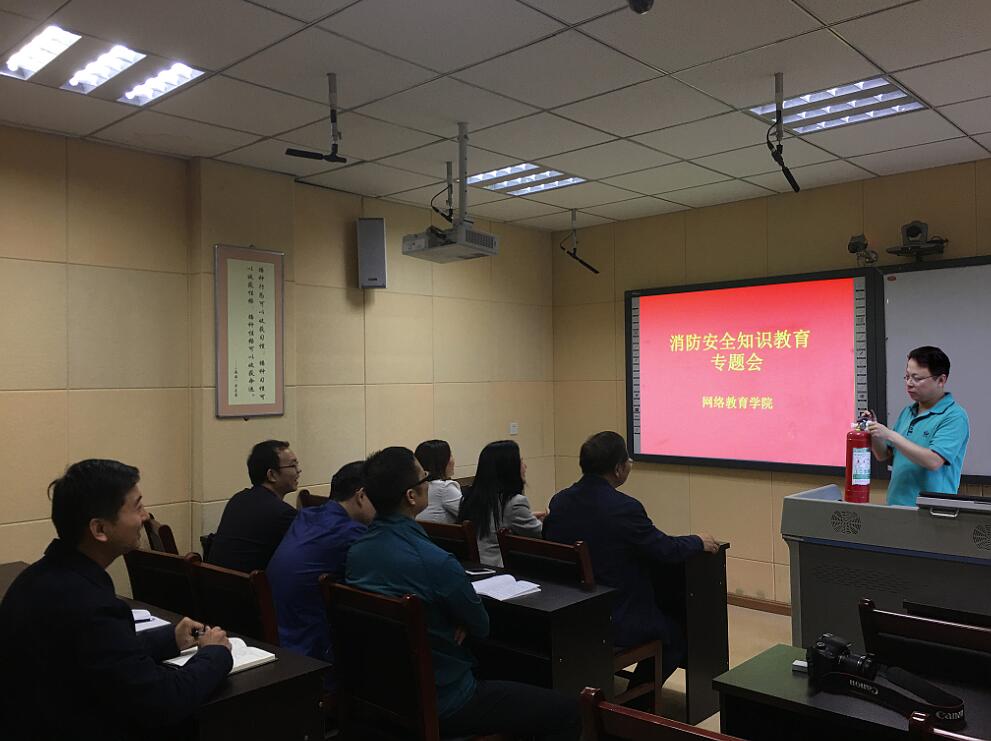 3月24日下午,为了增强全院全体教职工的消防安全意识,由学院消防安全员王彦东老师对学院全体教师进行消防安全知识培训讲座。 讲座开始,王老师首先为大家列举了近期发生在我们身边,因缺乏相关消防知识而发生的惨痛“悲剧”,发人深省。然后,向大家讲解了基本的消防知识,涉及火灾发生的原因、怎样预防火灾、火场逃生基本知识、灭火器的正确使用以及如何正确报警等内容。在讲解的过程中,他不仅从理论上教育大家应提高消防安全意识,而且通过亲自示范如何正确使用灭火器和其他求生工具,来让大家切实体会具备基本消防安全知识的重要性。