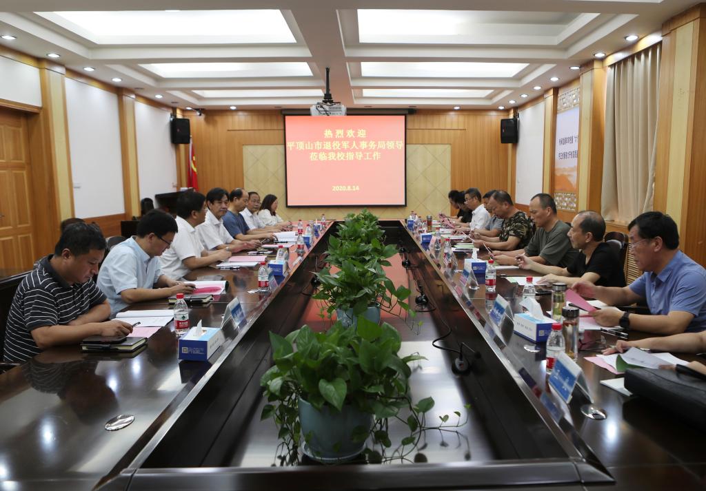8月14日下午,平顶山市退役军人学院筹备推进会在学校办公楼二楼会议室举行,平顶山市退役军人事务局局长席新利及领导班子成员,学校党委常务副书记宋伟毅、副校长李新玉、纪委书记李清锋,网络教育学院、教务处、招生处等相关部门负责同志等参加了会议。