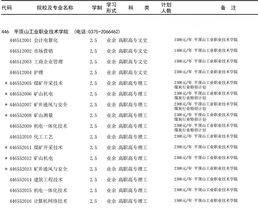 3、平顶山工业职业技术学院报名站(0375-2300566)