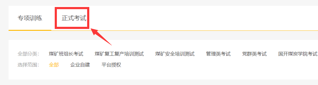 2.点击导航栏中的“考试中心”→“正式考试”