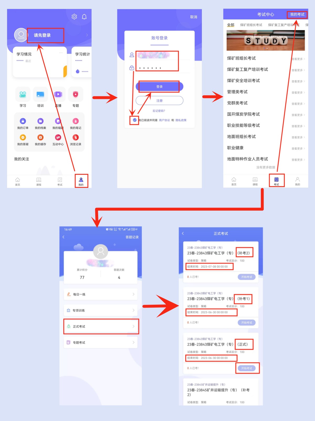 1登录考试网址:https://www.coaledu.net