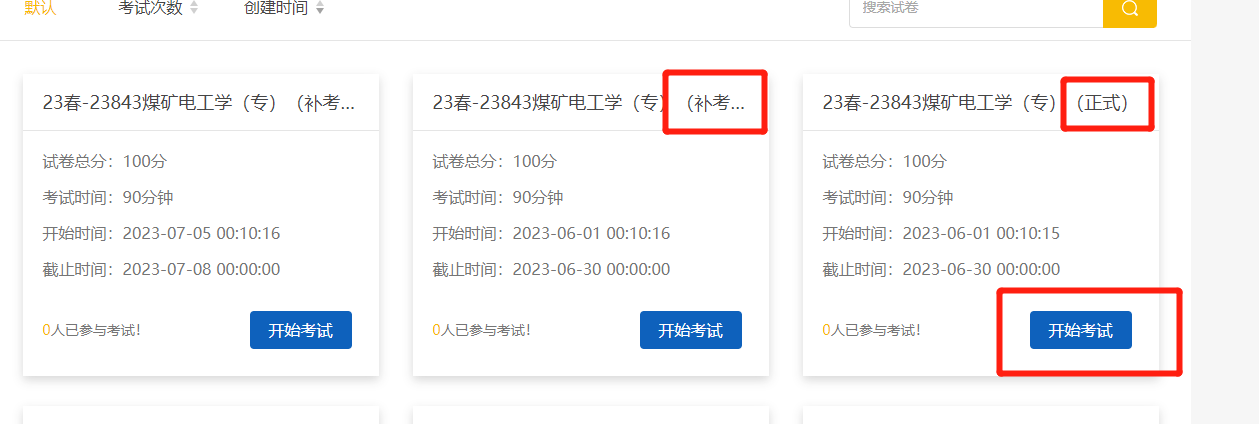 注意:本次考试设置三次机会,分别是正式考试、补考1、补考2,优先做“正式”的考试,若成绩不及格,再做“补考1”,若成绩还不及格,再做“补考2”。正式考试与补考1的考试时间相同,均为6月1日0时至6月29日24时。补考2考试时间为7月5日0时至7月7日24时。